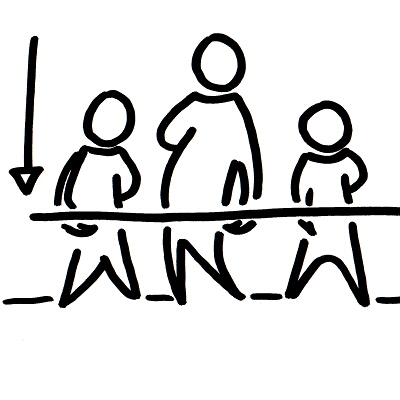 2. Demander aux participants de faire descendre ensemble le bâton jusqu’au sol sans jamais perdre le contact de leurs doigts avec le bâton.