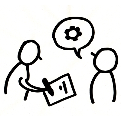 2. Rédaction: pendant l’interview le novice prend des notes sur un pad.