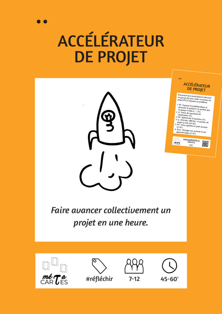 On aimé son contenu, mais aussi son coté low tech avec la flèche mobile qui peut servir de curseur pour visualiser et s’interroger collectivement sur la phase de réunion dans laquelle on se trouver (ou bien dans laquelle on veut se trouver).