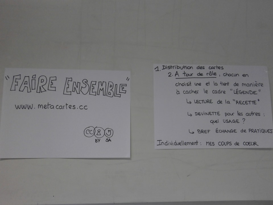 Cathy : Nous avons voulu diffuser des métacartes dans des lycées agricoles que nous accompagnons sur un projet et pour cela nous avons commandé une vingtaines d’exemplaires de « Faire ensemble » que nous avons donné ensuite pour équiper les lycées.