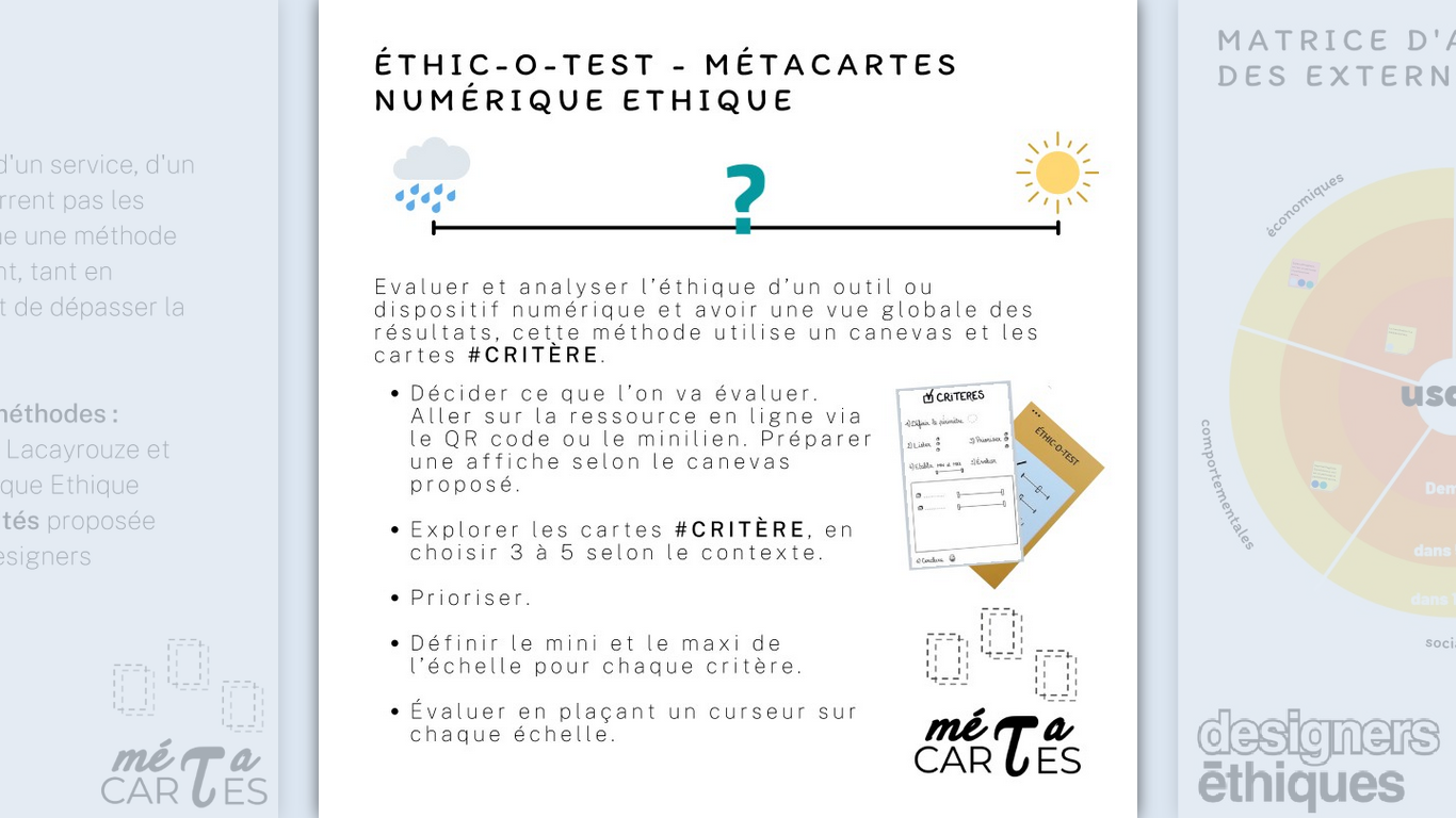 Gabriel Trouvé, ingénieur pédagogique à l’école de design de Nantes Atlantique, a mené dans le cadre des #JDLN2022 et du projet RFI-OIC “Cultures Numériques” à destination des enseignants du supérieur un atelier expérimental basé sur l’Ethic-O-test.