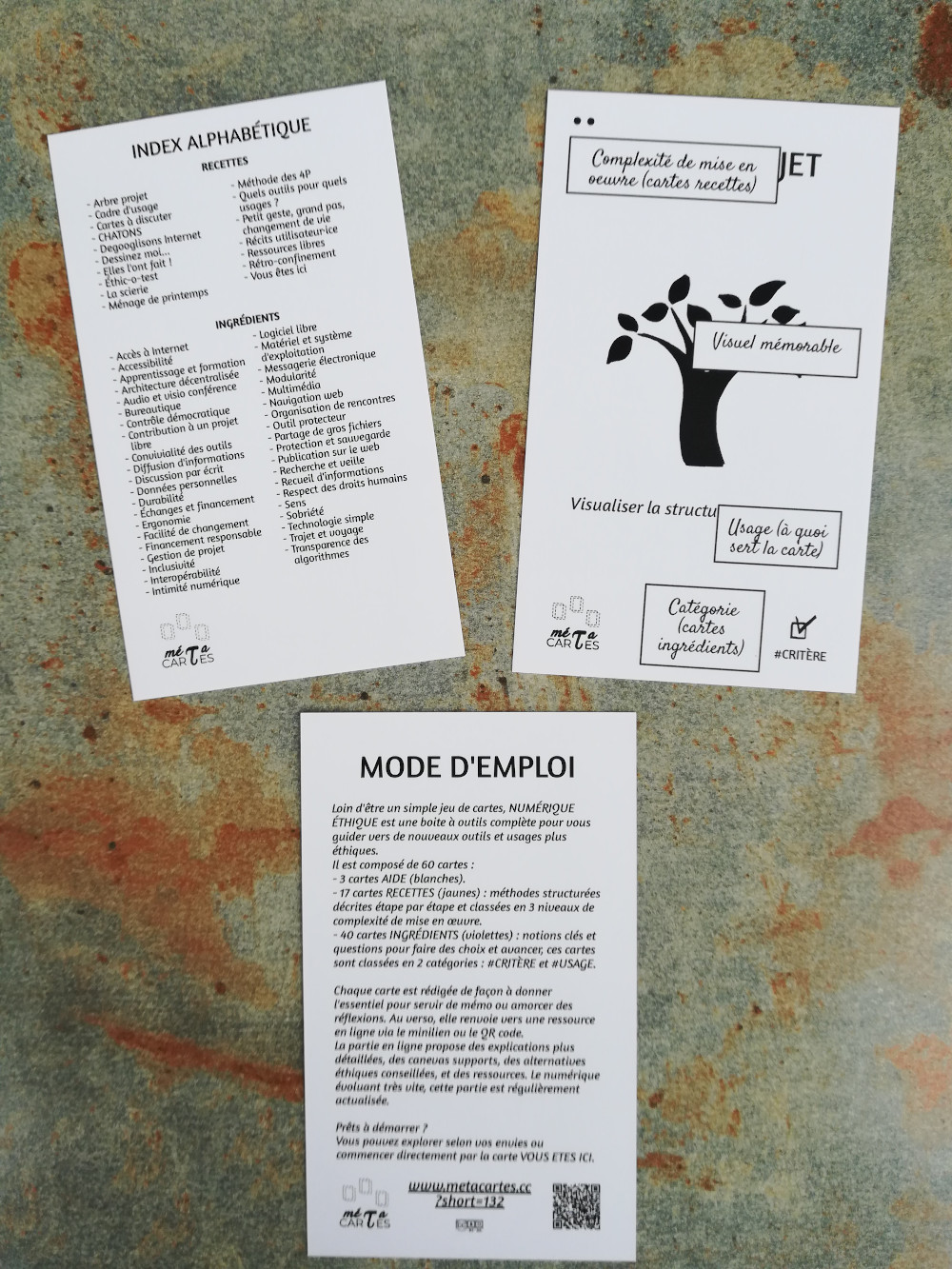 - 20 cartes ingrédients usages pour questionner ses usages et accéder à plus de 130 propositions de d’outils et alternatives éthiques